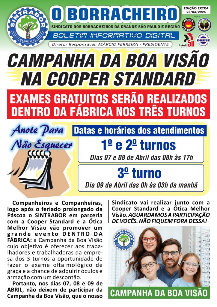CAMPANHA DA BOA VISÃO NA COOPER STANDARD OFERECE EXAMES GRATUITOS PARA OS TRÊS TURNOS