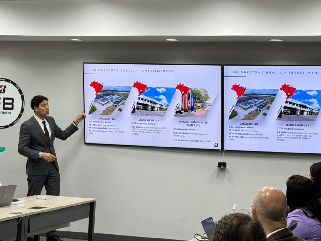 Após a reunião oficial, o ministro Marinho, juntamente com o presidente da Bridgestone, Lafaiete Oliveira, e o nosso presidente Márcio Ferreira fizeram um “tour” pelas instalações da fábrica.