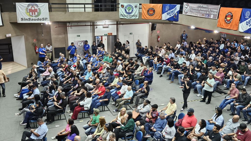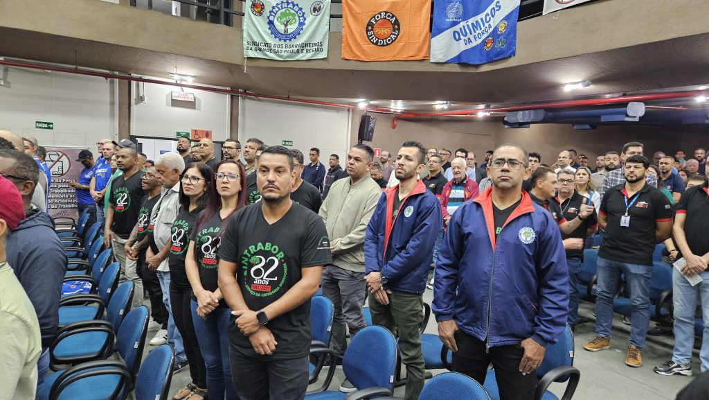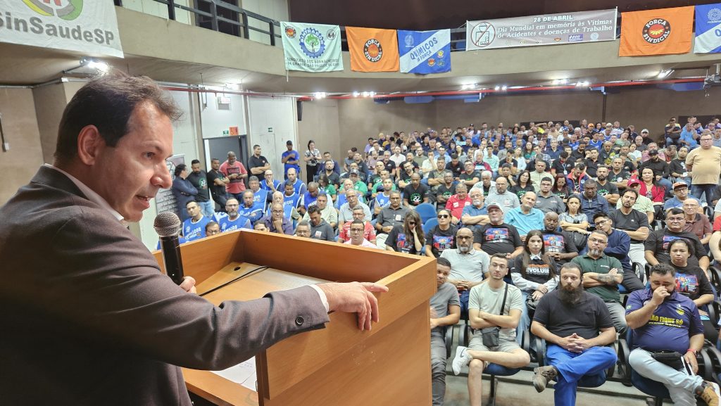Antes das palestras, sindicalistas e outras autoridades presentes falaram ao plenário. Destacamos o discurso de Serginho leite, presidente da FEQUIMFAR, que disse que a redução da jornada de trabalho, fim da escala 6 por 1 e combate à pejotização são medidas que trazem enormes prejuízos aos trabalhadores e estão ligadas sim à saúde do trabalhador.