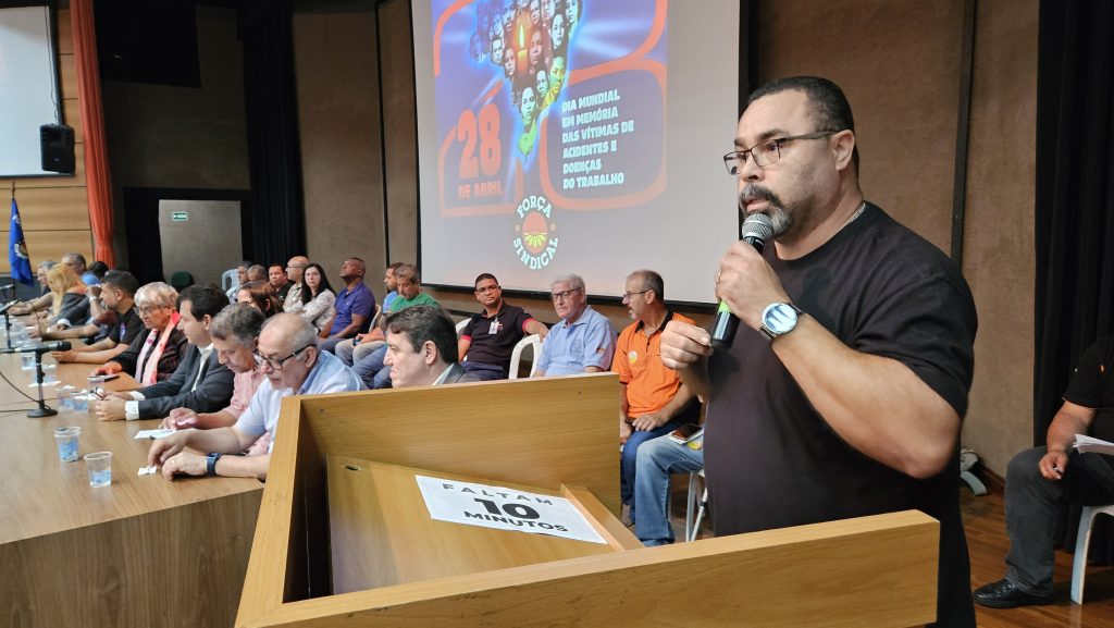 O Presidente do DIESAT (Departamento Intersindical de Estudos e Pesquisa de Saúde e dos Ambientes do Trabalho), Alex Ricardo Fonseca, também fez uso da palavra para falar da importância da saúde e segurança no local de trabalho.